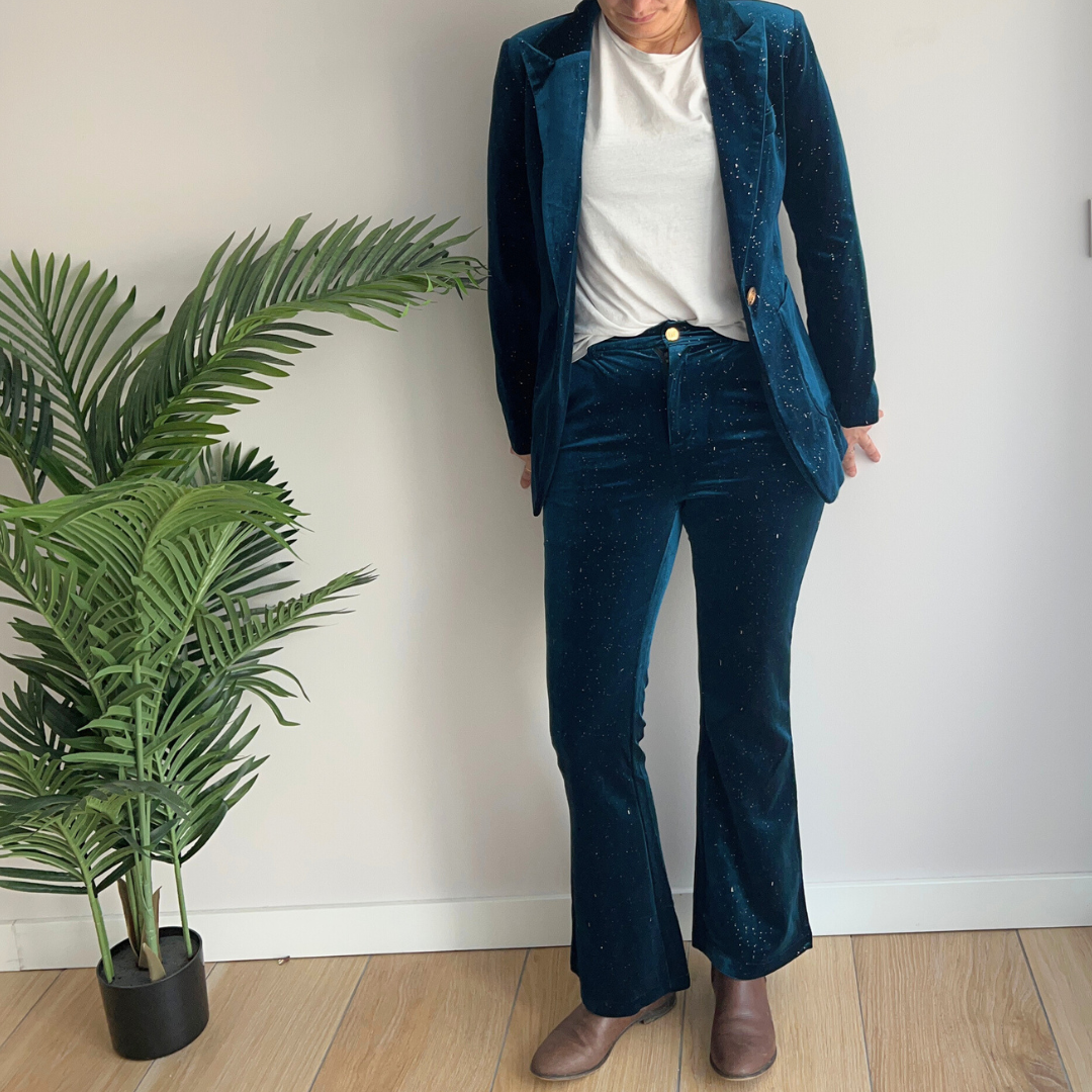 Ensemble femme à paillettes - blazer et pantalon évasé - Velours - Suzy