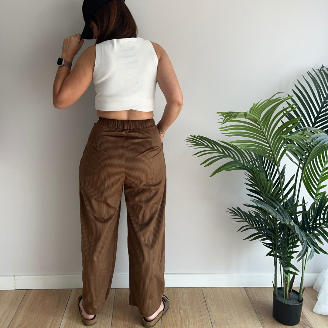 Pantalon Femme en Velours Côtelé Léger Taille Haute | Élégance Printanière & Confort